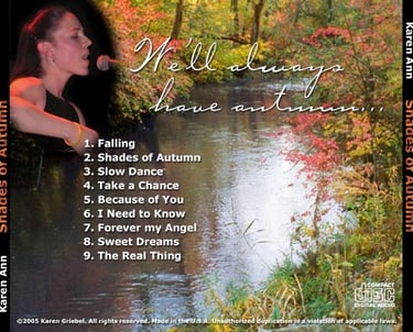 Inspired by the colors of autumn, this album was written and produced in 2025. All songs are original, both written and performed by the artist.